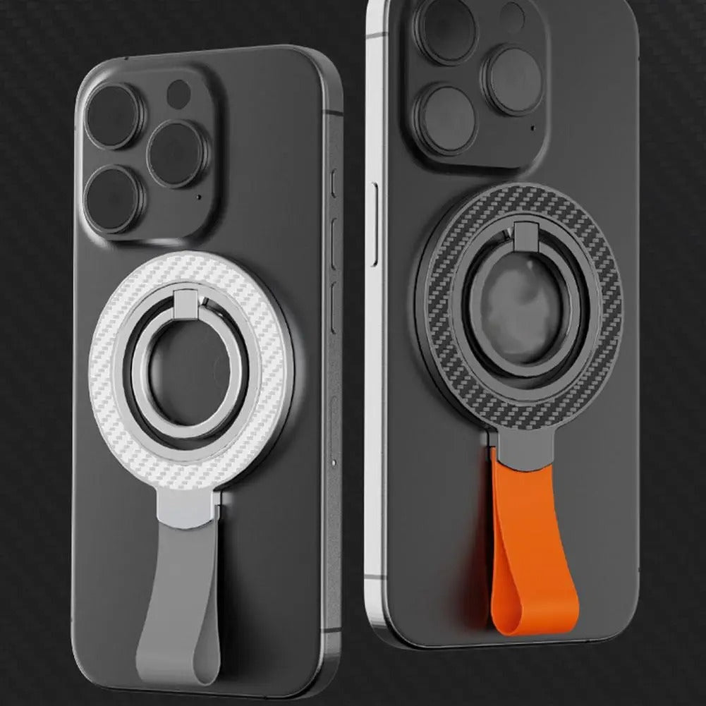 MagSafe Carbon Fiber Ring Holder with Strap ??Magnetic Kickstand & Finger Loop