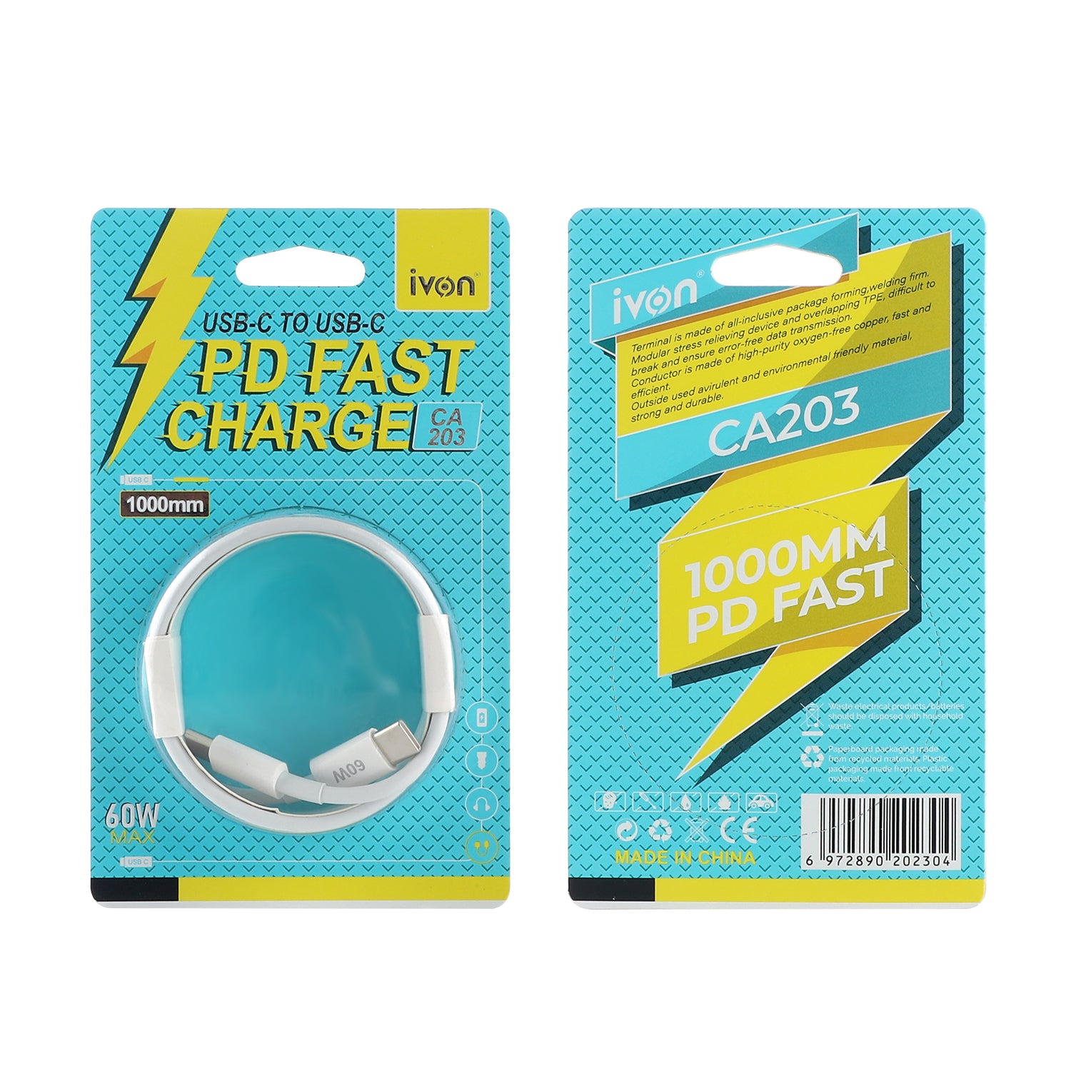 ivon 60W fast charge usb c to usb c 1m (ca203)