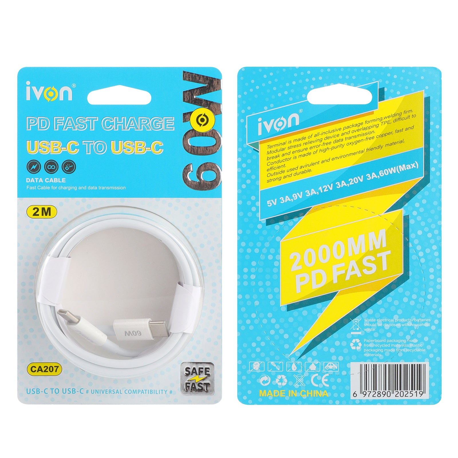 ivon 60W fast charge usb c to usb c 2m (ca207)